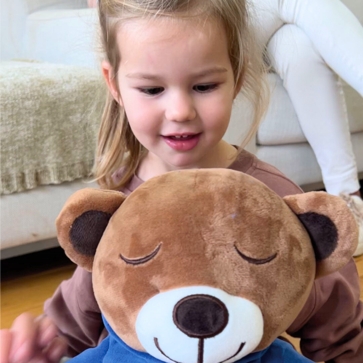 Worried about missing Mom or Dad while sleeping or in new places? Meddy Bear feels like a familiar friend and helps your child relax independently, without feeling alone.